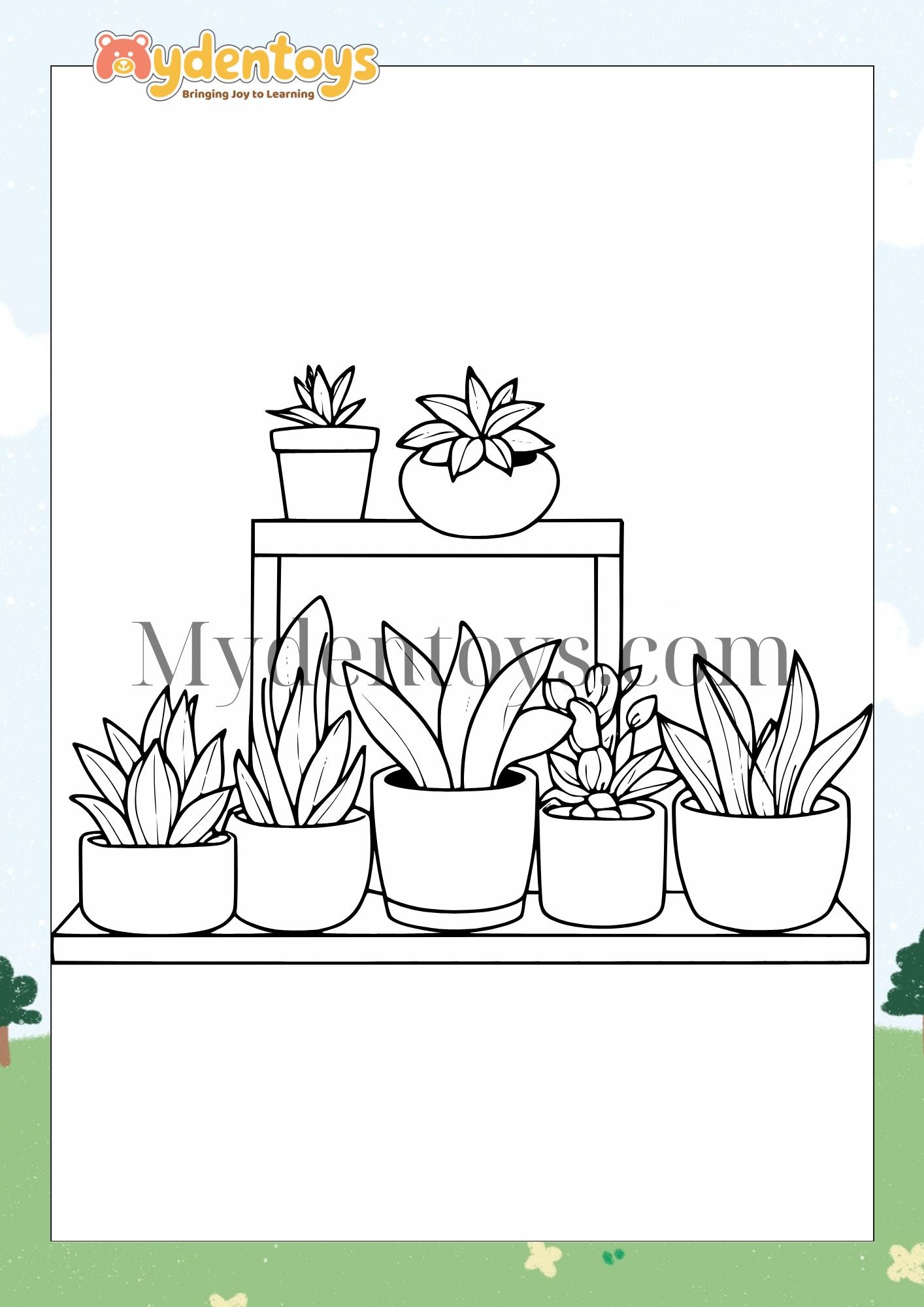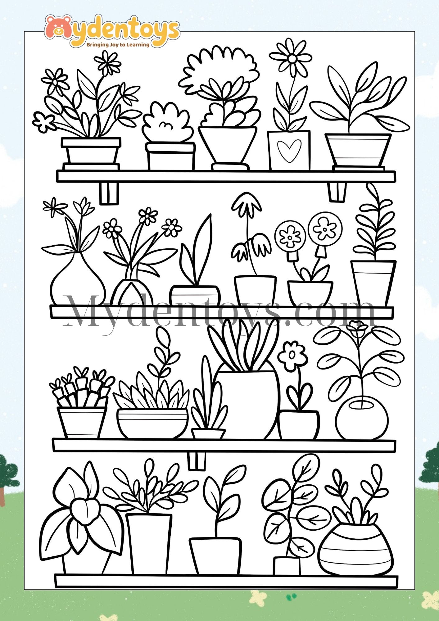 Inside, the pages continue this nature-friendly theme. Each coloring sheet is dedicated to different plant-inspired designs—ranging from seedlings in pots, simple tree shapes, to playful garden scenes. These illustrations are bold, easy to color, and perfect for little hands.